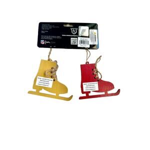 • Set of 2 Wooden Ice Skate Ornaments (Red & Gold)