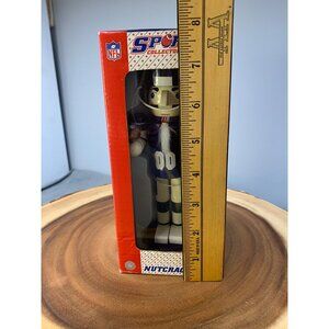 Step back in time with this charming NFL Nutcracker from the Sports Collectors Series, encapsulating the essence of vintage sports memorabilia. Crafted in 1998, it features a football player in classic blue and white attire. This figure stands at 7 inches and is a delightful homage to the sporting spirit of yesteryears.