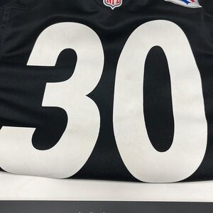 This jersey is in great condition! Has a couple very minor spots. Overall great condition!