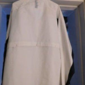 Wrist have Velcro adjustments. Two pockets on the outside by each side and on the inside a large pocket which has Velcro