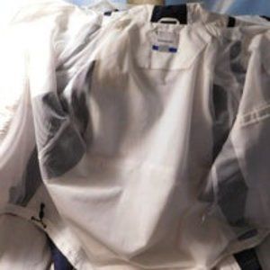 It's a windbreaker type jacket but the material is a little heavier than your typical windbreaker jacket