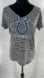 Heather Gray burnout tee with blue and white distressed logo on the front.