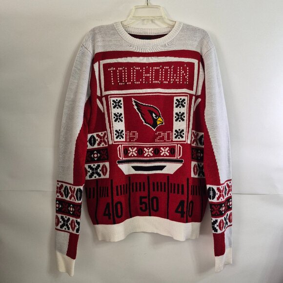 NFL Team Apparel Mens L Arizona Cardinals Light Up Long Sleeve Sweater Red White