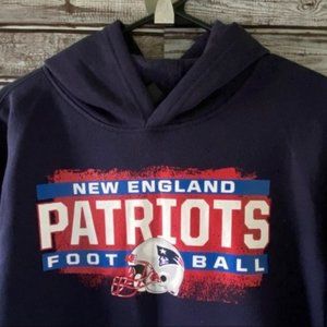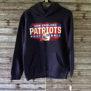 This NFL Team Apparel New England Patriots Hooded Sweatshirt is a Youth Size M and is made of 70% Cotton and 30% Polyester. It is navy blue in color with a red, white and blue Patriots Graphic on the front. NWT. Excellent Condtion!