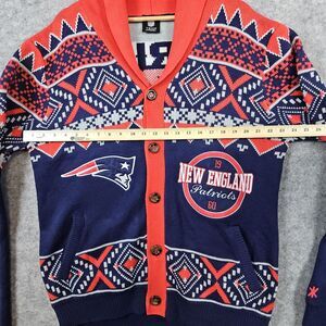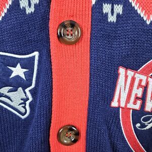 Very cool New England Patriots cardigan from NFL Team Apparel. Show your support for your team while tailgating or inside the stadium! Made of 100% acrylic & the tag size is L.