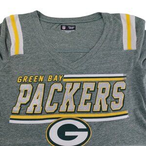 NFL Team Green Bay Packers Tee V-Neck Short Sleeve T-Shirt Woman Size M Soft Gray