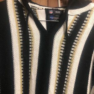 NFL Team Little Earth Productions New Orleans Saints hooded knitted pullover sweater tunic. Front pocket. 3/4 length sleeves. Size L/XL 100% Acrylic. Preowned
