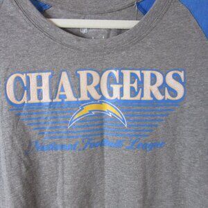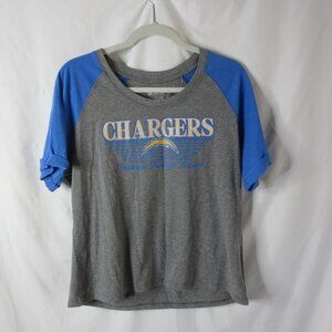 NFL Team Los Angeles Chargers T Shirt Gray Blue Glitter Crew Size Large NWT