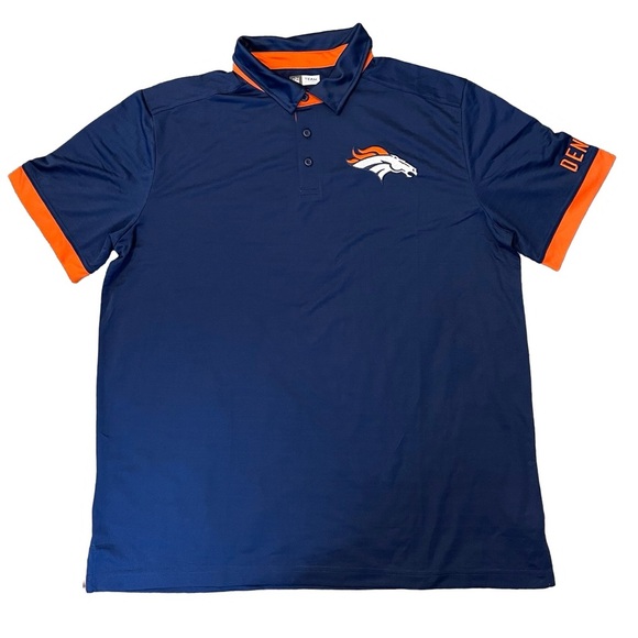 NFL Team apparel Denver Broncos sleeve large logo polo men size 2XL/ blue/orange. In excellent used condition. See pics for condition and sizing. NFL football fan favorite