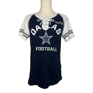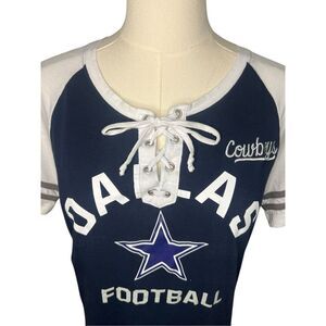 NFL Team Apparel Women’s Medium Dallas Cowboys Navy Lace Up Raglan T-Shirt