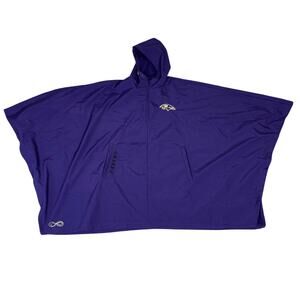The NFL Ravens Poncho showcases team spirit with its bold purple color and official Tony Gonzalez branding. This versatile jacket-poncho hybrid features a comfortable fit and durable construction, perfect for game days or casual fan wear. The practical design and team colors provide both warmth and pride, making it ideal for football games, tailgate parties, or showing your Ravens support in comfortable style.