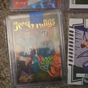 Collection of NFL trading cards featuring various players. Includes vibrant designs and player images.