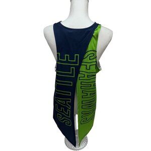 NFL Licensed Womens Seattle Seahawks Football Open Wrap Back Racerback Blue Green Tank Top Shirt Large Spell Out Silky Soft Lightweight Stretch. Great Pre-Owned Condition Gently Worn. Ships from smoke free home.
