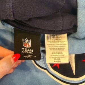 Light blue NFL hoodie with bold front logo. Youth size. Comfortable fit.