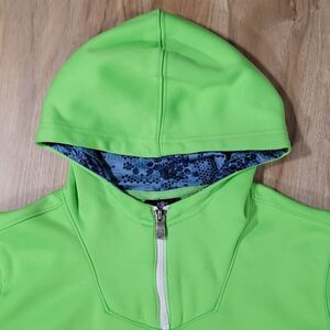 Well loved neon green and navy Seahawks partial zip hoodie with front pockets. A perfect option for that Seahawks fan to help keep them warm while they're tossing a football around outside this fall!