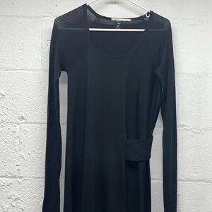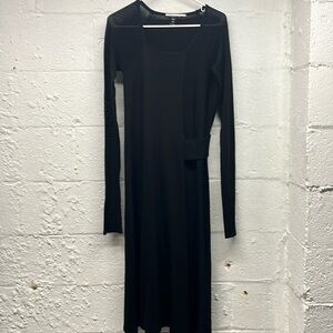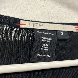 NFP Studio merino wool midi sweater dress size 3 (MEDIUM) with sheer sleeves. Per size chart it’s a medium. Gently preowned. Belted feature detail. Midi length. Last photo is just to show how the sheer looks on sleeves but is not this actually dress. Approx measurements flat: pit to pit 16, length 47