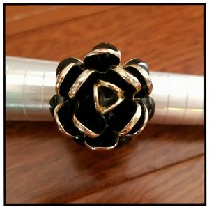 Black Enamel Blooming Flower Ring