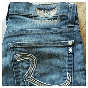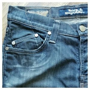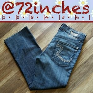 Relaxed fit straight leg jeans in a slightly faded dark wash. Five pocket styling with button fly. No holes or destressing. Cut # 001658