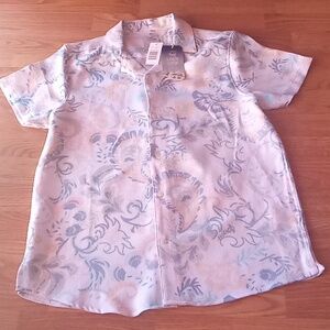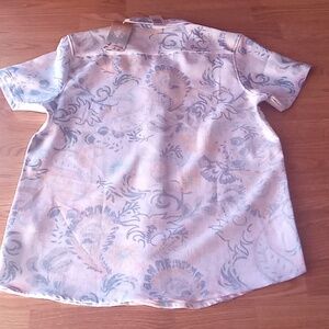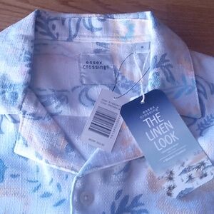 brand new with tags men's button up tropical print shirt by Essex Crossing. The Linen Look, Designer Look. these are a creamy white with blues mostly. this shirt feels so nice, it will be your favorite! MSRP $65.00