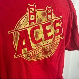 Classic red souvenir collectible keepsake bar tee shirt from Aces bar - a San Francisco staple.