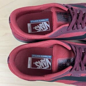 Vans Men’s Size 8.5 Ave Pro Port Royal Red Maroon Low Top Skate Shoes. Shoes are used but in good condition, overall normal wear. Has some marks/blemishes and a few fuzzes/pet furs on lining. Plenty of life left, pictures show details!