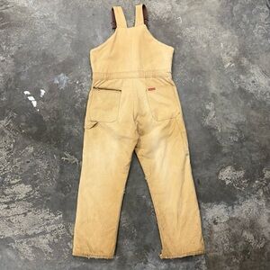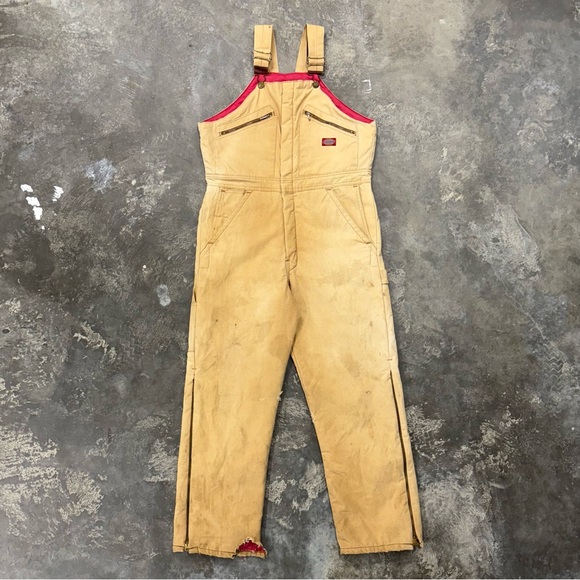 Vintage Dickies workwear bib overalls in rugged condition with natural wear — ideal for workwear, utility style, or vintage wardrobe.