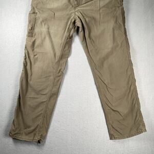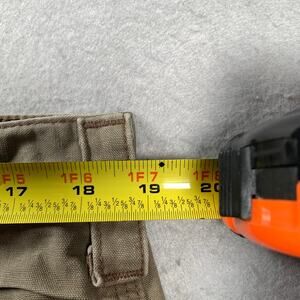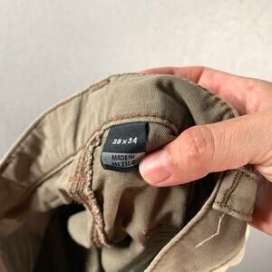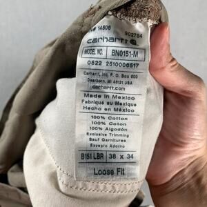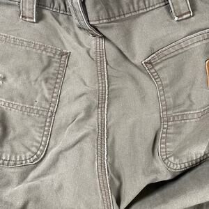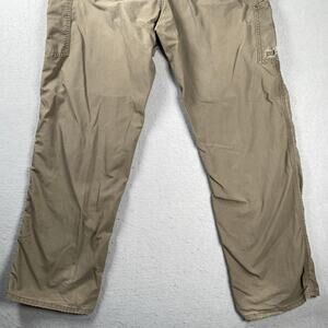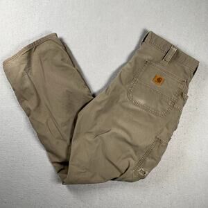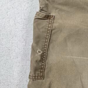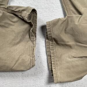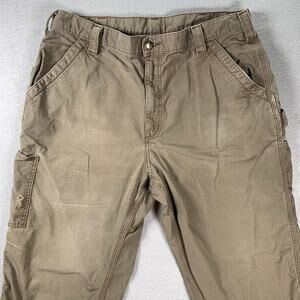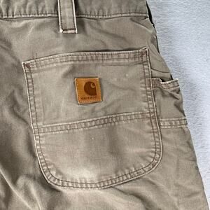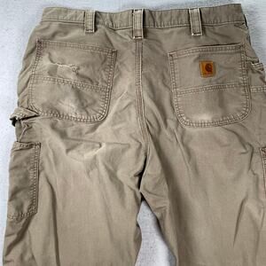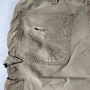 Carhartt Loose Fit Pants Mens 38x34 Canvas Utility Work Brown BN0151 LBR - there is distressing present and holes in the pockets that do not go all the way through. There is some heel drag. Please review all photos for condition.