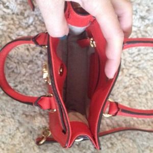 Wasn't sure about selling because I love this bag so much!!! Bought to keep in a display. Never been used. 😍 SOLD out color. Will also list on EBay, price firm for now. Description: A gleaming logo medallion adorns a compact messenger bag cut from richly textured Saffiano leather. Rolled handles.Top magnetic-snap closure. Adjustable strap. Interior zip pocket. Logo-jacquard lining. Leather.