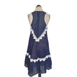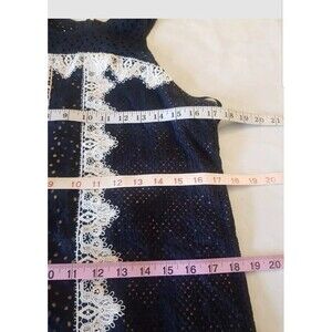 NHA KHANH Womens Dress Size 10 Crew Neck Bell Shaped Eyelet Lace Navy Blue Southernbell Bohowestern Western