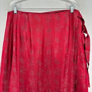 NHA MAY LAI Skirt M Wrap Tie Belt Vietnamese Brocade Traditional Asian Red