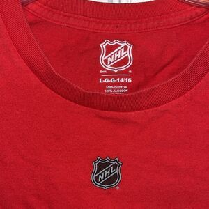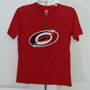 NHL Carolina Hurricanes #37 Andrei Svechnikov Red Eye Logo Jersey shirt L 14/16