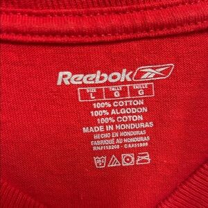 ✨Vibrant red Reebok t-shirt. Soft cotton fabric. Classic Hurricane logo detail on front. Retired Tuomo Ruutu name on back with #15 textured graphic.