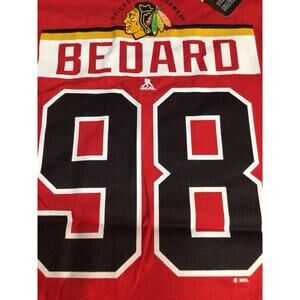 Show your support for the Chicago Blackhawks and rising star Connor Bedard with this brand new #98 T-shirt! This vibrant red tee is perfect for game days, workouts, or everyday wear. Get ready to cheer on Bedard and the Blackhawks in style!