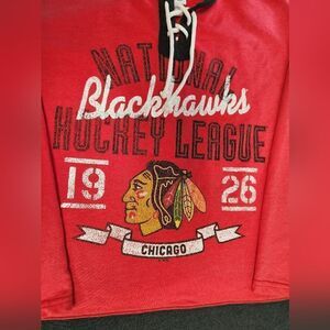 NHL Chicago Blackhawks LARGE Gray Red Pullover Lace Up Sweatshirt