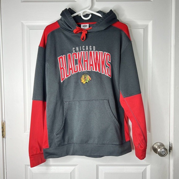 NHL Chicago Blackhawks Men's Edge Poly Textured Hoodie - Red Size Large.