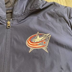 Featuring the team's logo and colors, this jacket is a great addition to any fan's collection. It comes in size M and has pockets for your convenience. Get ready to cheer on the Columbus Blue Jackets in style with this brand new jacket!