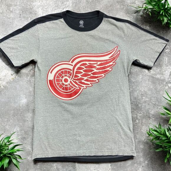 NHL Detroit Red Wings Hockey 2-Tone Grey Black Red T-Shirt Mens Size Medium
