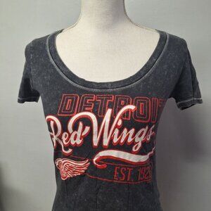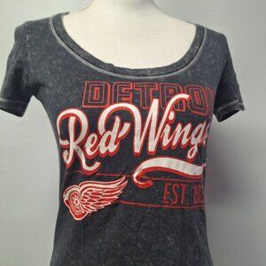 NHL Detroit Red Wings Tee Shirt Gray Womans Small Hockey Michigan Fan Round Neck