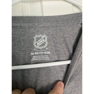The product is an officially licensed NHL New Jersey Devils Youth T-shirt in size XL (18/20). The shirt is gray in color and features the team logo of the New Jersey Devils. It is perfect for young fans of the hockey team and is a great addition to any sports memorabilia collection. Represent the team with this stylish and comfortable shirt that is sure to show off your support for the New Jersey Devils.