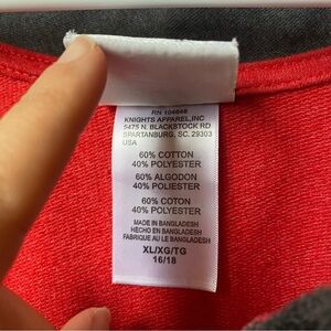 Stylish red and black sweatshirt. Comfortable cotton blend. Perfect for casual wear.