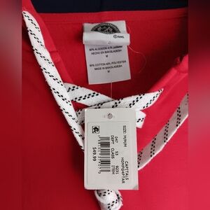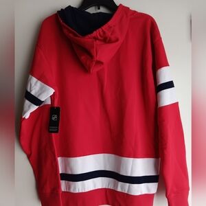 Vibrant red NHL hoodie. Features lace-up neckline. Comfortable and stylish.