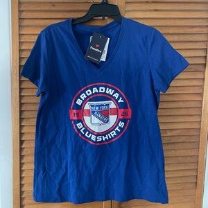 NHL Women’s New York Rangers Local Slogan Blue V-Neck T-Shirt Sz L NWT