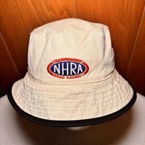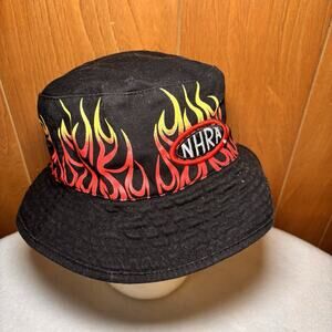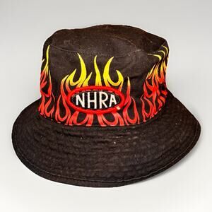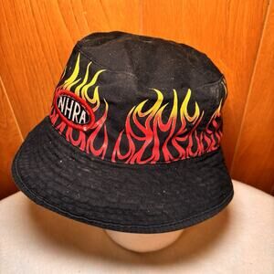 NHRA Reversible Bucket Hat Flame Graphic Black Tan Championship Drag Racing Logo