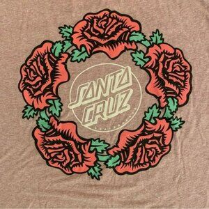 NHS womens size S pink short sleeve t-shirt with Santa Cruz and roses graphics