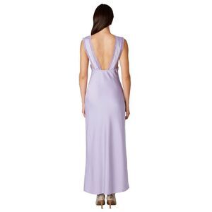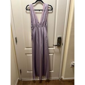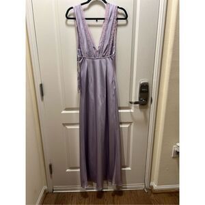 NIA AURELIE Maxi Satin Dress featuring lace detailing Lilac size S NWT$108