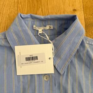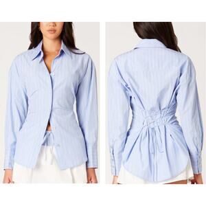 NIA - Jules Striped Button Front Long Sleeve Tie Back Shirt in Blue & White