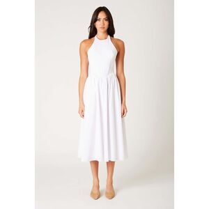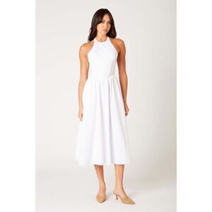 NIA Rio Dress vintage inspired Halter-Neck White Poplin Midi Dress Summer Brunch Dress size S NWT
