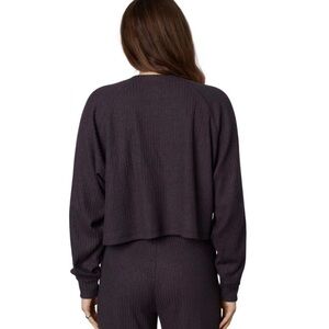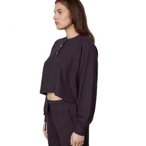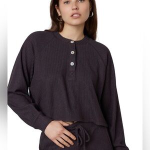 So comfy and perfect for lounging, this soft henely is featured in a relaxed fit, cropped style with buttons at the neckline.