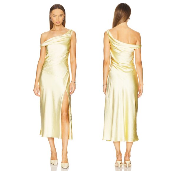 NIA Tori Midi Dress in Butter Yellow Formal Wedding Guest Gown Medium M