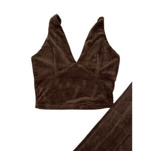 NIA - V Neck Sleeveless Velour Tank & Wide Leg Pants in Chocolate Brown